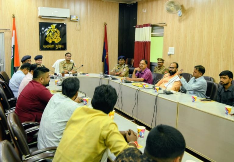 बाराबंकी। रिजर्व पुलिस लाइन्स बाराबंकी स्थित सभागार में पुलिस अधीक्षक अर्पित विजयवर्गीय द्वारा जनपद के व्यापार मंडल व सर्राफा एसोसिएशन के पदाधिकारियों/व्यापारिक बन्धुओं के साथ गोष्ठी की गयी। गोष्ठी में व्यापारियों की सुरक्षा व पुलिस स्तर की अन्य समस्याओं के सम्बन्ध में विस्तृत रूप से चर्चा की गयी। साथ ही व्यापारी बन्धुओं से मुख्य मार्गों एवं चौराहों को अतिक्रमण मुक्त रखने की अपील की। सभी व्यापारिक संगठनों से यह अनुरोध किया गया कि प्रतिष्ठानों पर अधिक से अधिक सीसीटीवी कैमरे लगाएं तथा सड़कों पर भी सीसीटीवी कैमरे का फोकस करें। इसके साथ ही व्यापारी बन्धुओं को व्यापारिक गतिविधियों में इलेक्ट्रानिक लेन-देन में सावधानी बरतने व दुकानों एवं घरों में कार्य करने वाले नौकरों के सत्यापन कराने के सम्बन्ध में भी प्रोत्साहित किया गया। मौके पर अपर पुलिस अधीक्षक उत्तरी विकास चन्द्र त्रिपाठी, क्षेत्राधिकारी नगर संगम कुमार, क्षेत्राधिकारी यातायात आलोक पाठक व व्यापारी बन्धु मौजूद रहे।