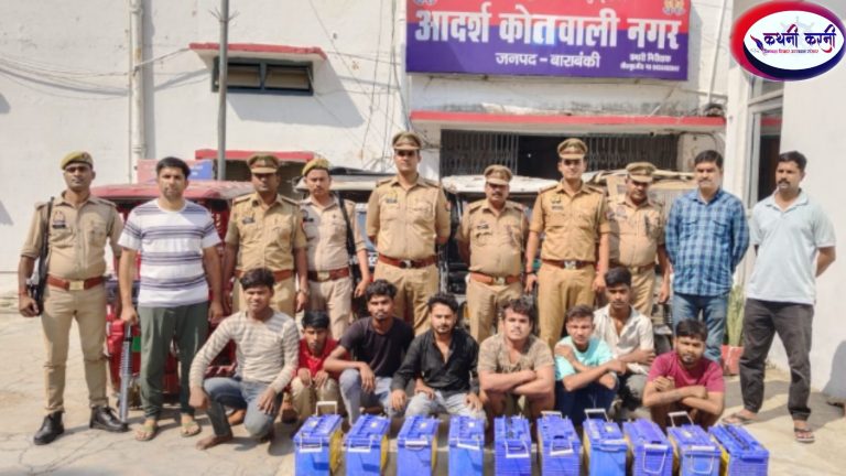 कथनी_करनी न्यूज़ बाराबंकी। ई रिक्शा और उसकी बैट्री की चोरी करने वाले गैंग का नगर कोतवाली पुलिस ने पर्दाफाश किया है। पुलिस ने पकड़े गए गिरोह के आठ सदस्यों की निशादेही पर डेढ़ दर्जन बैट्री, ई-रिक्शा और उसकी चेचिस की बरामदगी की है। एसपी के निर्देश पर स्वाट/सर्विलांस और नगर कोतवाली की संयुक्त पुलिस टीमों ने कामयाबी हासिल करते हुए गरीब ई रिक्शा वालों को बड़ी राहत पहुंचाने का काम अंजाम दिया है। पुलिस की संयुक्त टीम ने नगर कोतवाली क्षेत्र में ओबरी जंगल से असद नगर निवासी इमरान उर्फ़ भुट्टा, हसीब, हजाराबाग निवासी नीरज, कानून गोयान मोहल्ला निवासी साहिल, दशहराबाग निवासी शुभम सिंह, आजाद नगर दशहराबाग निवासी निहाल, लखनऊ के जानकीपुरम थाना क्षेत्र के भिटॉली चौराहा निवासी सोहेल और लखनऊ के गोडम्बा थाना क्षेत्र के गोल चौराहा कल्याणपुर निवासी आर्यन सोनी को गिरफ्तार करने में सफलता हासिल की है। पकड़े गए आरोपियों के पास से 18 ई-रिक्शा की बैट्री, एक ई रिक्शा, ई रिक्शा चेचिस और घटना में प्रयुक्त दो ई रिक्शा बरामद किए है।