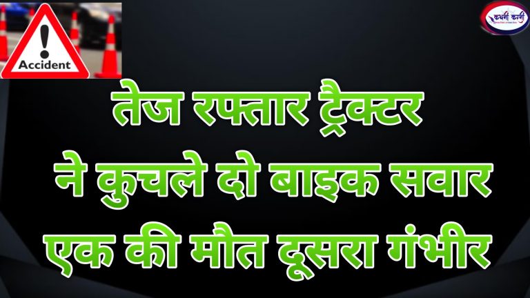 तेज रफ्तार ट्रैक्टर की टक्कर, एक युवक की मौत दूसरा गंभीर