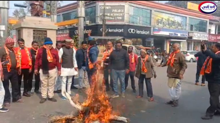 बाराबंकी। बंगलादेश में इस्लामिक आतंकवाद की भेंट चढ़ाए जा रहे हिन्दुओ के लिए सभी हिन्दुओ को एकजुट होना होगा। इस ऐलान के साथ बांग्लादेश मुर्दाबाद के नारे लगाते हुए शिवसैनिको ने मोहम्मद यूनुस का पुतला फूँका। शिवसेना शिंदे गुट के जिलाध्यक्ष के नेतृत्व में दर्जनों शिवसेनिकों ने फूंका बांग्लादेश के प्रधानमंत्री के खिलाफ रैली निकालकर नारेबाजी की।