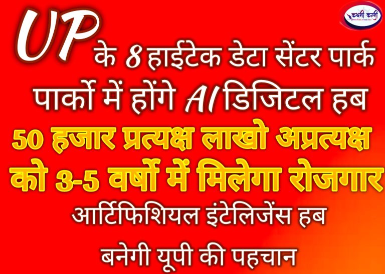 “योगी सरकार की जन कल्याणकारी व महत्वाकांक्षी योजना के तहत पूरे प्रदेश में बनने जा रहे 8 हाई-टेक डेटा सेंटर पार्क। इन पार्को में स्थापित होंगे एआई डिजिटल हब। इन 8 हाई-टेक डेटा सेंटर पार्को के निर्माण में 2 लाख करोड़ रुपये का होगा निवेश। इन पार्को से 50 हजार रोजगार सृजित करने का सरकार का लक्ष्य।सरकार का इन पार्को में वैकल्पिक ऊर्जा पर रहेगा जोर। अब वैश्विक डिजिटल हब के रूप में होगी उत्तरप्रदेश की पहचान”