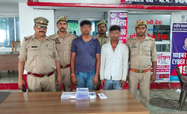 बाराबंकी। देवा कोतवाली क्षेत्र में बृहस्पतिवार को राघवपुरवा गॉव से गुजर रहे व्यक्ति से लूट की वारदात कर आरोप में दो लोगो को पुलिस ने गिरफ्तार करने में सफलता हासिल की है। देवा कोतवाली में दर्ज शिकायत पर पुलिस ने छानबीन के साथ मुखबिरो की मदद से वारदात से पर्दाफाश किया। पीड़ित पक्ष ने देवा कोतवाली पर सूचना दी थी कि बीते बृहस्पतिवार को कोतवाली क्षेत्र के राघवपुरवा में उसके साथ दो लोगो द्वारा लूट की वारदात अंजाम दी थी। पुलिस ने 72 घंटे की कड़ी मशक्कत के बाद मुखबिर की मदद से सिपाहिया के पास छिनैती में शामिलदोनों आरोपियों जिनमें सिदवाही ग्राम पंचायत के राघवपुरवा निवासी उमेश उर्फ़ बत्तीस उर्फ़ भूरे उर्फ़ तिवारी पुत्र स्व. सोहनलाल और मित्तई ग्राम पंचायत के ग्राम बदरुद्दीनपुर निवासी गुड्डू उर्फ़ श्री किशन पुत्र रामसेवक को दबोचने में कामयाबी हासिल की। पुलिस ने बताया कि दोनों आरोपियों ने मिलकर एक व्यक्ति को डरा धमका कर एक हजार रूपये की नगदी और मोबाइल फोन की छिनैती काण्ड को अंजाम दिया था।