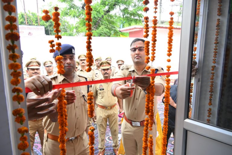 बाराबंकी। थाना जैदपुर परिसर में नवनिर्मित मीटिंग हाल का एसपी अर्पित विजयवर्गीय ने लोकार्पण किया। साथ ही पुलिस अधीक्षक द्वारा ग्राम प्रहरियों को बारिश से बचाव हेतु छाता वितरण किया गया। इस अवसर पर अपर पुलिस अधीक्षक दक्षिणी रितेश कुमार सिंह, क्षेत्राधिकारी सदर सौरभ श्रीवास्तव, जैदपुर प्रभारी निरीक्षक सन्तोष कुमार व अन्य अधिकारी व कर्मचारी मौजूद रहें।