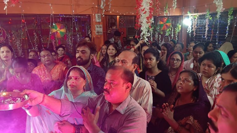 बाराबंकी। जिले में गणपति महोत्सव की धूम है। श्रद्धालुओं द्वारा अनेक मंदिरो और धार्मिक स्थलों पर भगवान गणेश की प्रतिमा स्थापित करके पूजा अर्चना की जा रही है। ऐसा ही भव्य पूजन कार्यक्रम घंटाघर के मोहल्ला कानून गोयान स्थित बूढ़ेश्वर महादेव मंदिर मे आयोजित हुआ। इस पांच दिवसीय कार्यक्रम मे महिलाओं ने संगीत बनाकर ढोल मंजीरो के साथ कीर्तन किया। आरती के बाद गणपति को मोदक का भोग लगाकर विधि विधान से दर्शन पूजन किया। यहां दर्शन के लिए देर रात श्रद्धालु जुटे रहे। पूजन कार्यक्रम में मुख्य रूप से सेवादार धीरेंद्र श्रीवास्तव, रिंकू, पवन पांडे, मुकेश श्रीवास्तव, शिवम शुक्ला ‘अन्नू’ एवं पवन रस्तोगी सहित तमाम महिलाएं, बुजुर्ग और बच्चे शामिल हुए।