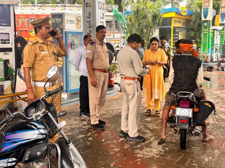 कथनी_करनी न्यूज़ बाराबंकी। शासन द्वारा दिए गए निर्देश में पूरे सितंबर महीने में “नो हेलमेट नो फ्यूल “अभियान चलाया जा रहा है। इस अभियान के तहत बिना हेलमेट आए हुए दोपहिया वाहन चालकों को पेट्रोल पंप द्वारा कोई भी फ्यूल नहीं दिया जाएगा। समय-समय पर परिवहन विभाग और ट्रैफ़िक पुलिस की संयुक्त टीम द्वारा औचक निरीक्षण करके बिना हेलमेट आए दोपहिया वाहन चालकों का चालान भी किया जाएगा। उक्त अभियान के दृष्टिगत पहले दिन कुल तीन पेट्रोल पंप पर जाकर प्रवर्तन कार्रवाई की गई और 22 वाहनों का चालान किया, साथ ही पेट्रोल पंप प्रबंधकों और कर्मचारियों को अभियान के बारे में जागरूक किया गया।